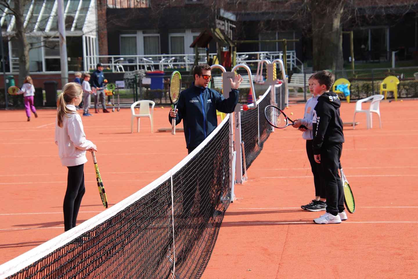 In de voormiddag krijgt men 'tennisles' in groepjes; groepjes ingedeeld i.f.v. leeftijd en tenniservaring.